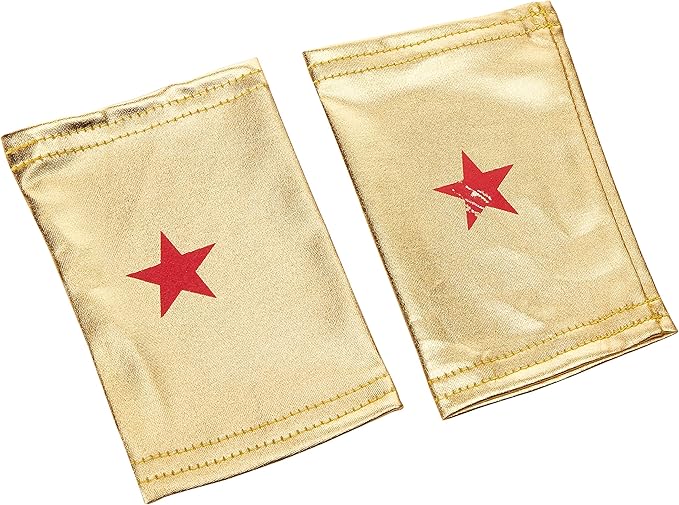 IMPORTANT DETAILS: Gold tiara and gauntlets with red star, and Wonder Woman lasso